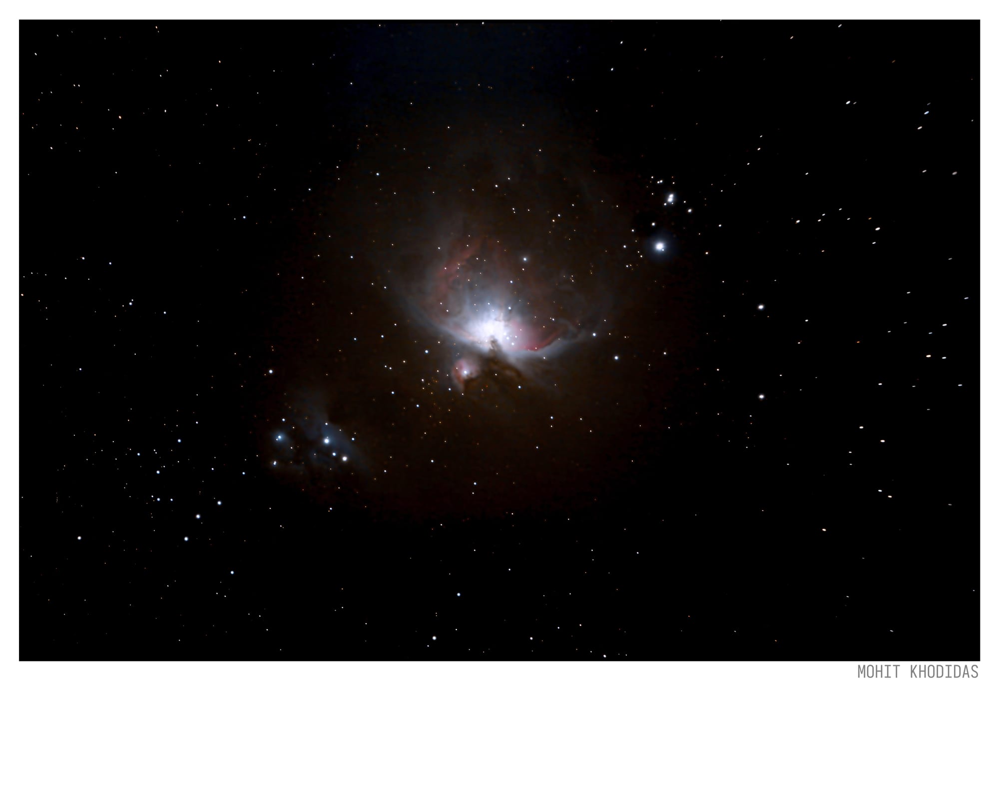 I have been wanting to combine my interests in astronomy and photography by exploring deep sky imaging. I have spent many hours getting this first image of Orion Nebula. This is a diffuse nebula in the Orion constellation. It is about 1500 light years away. About 700 new stars are being formed in the gases of this nebula. How incredible that I can see this nursery of stars from our planet. Photographed from highly light polluted city of Rajkot.